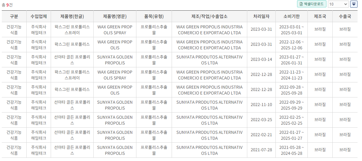 선야타 프로폴리스는 벌써 5회 수입했고 이번에 입고 되면 6회 차가 되네요. 21년 7월 말 처음 수입한 이후로요. 가끔 정식 수입산 프로폴리스가 맞냐고 물어보는 분들이 계세요.