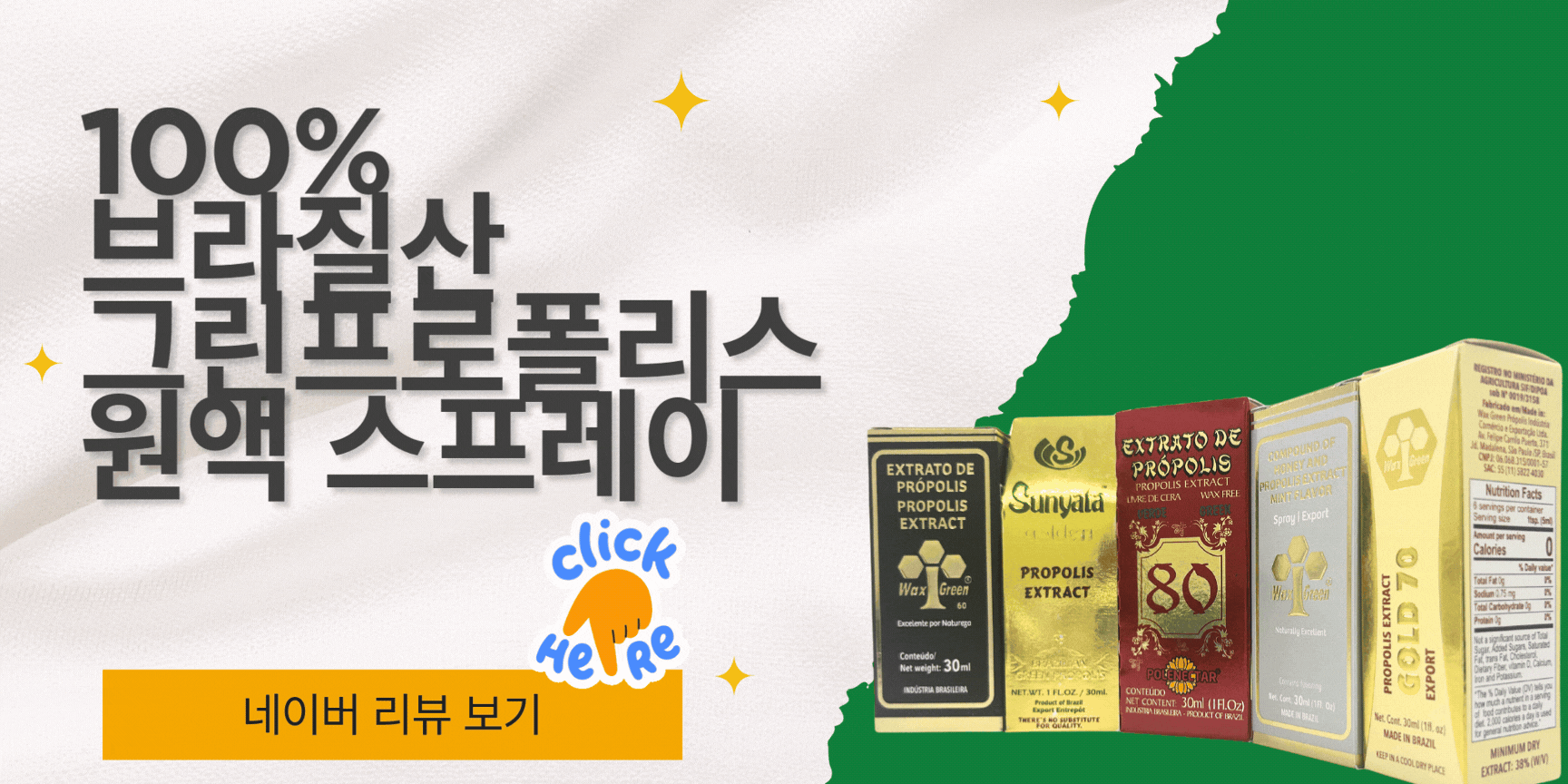 | 브라질 그린 프로폴리스 원액 3종 구경해 보세요. (3) | 2025.08.20 |